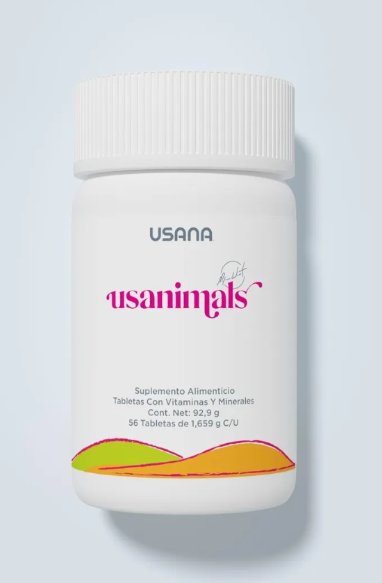 Usanimals es un suplemento multivitamínico infantil que ayuda a complementar la alimentación de los niños cuando su dieta no cubre todos los nutrientes necesarios. Apoya el desarrollo general, el sistema inmune y la energía diaria.